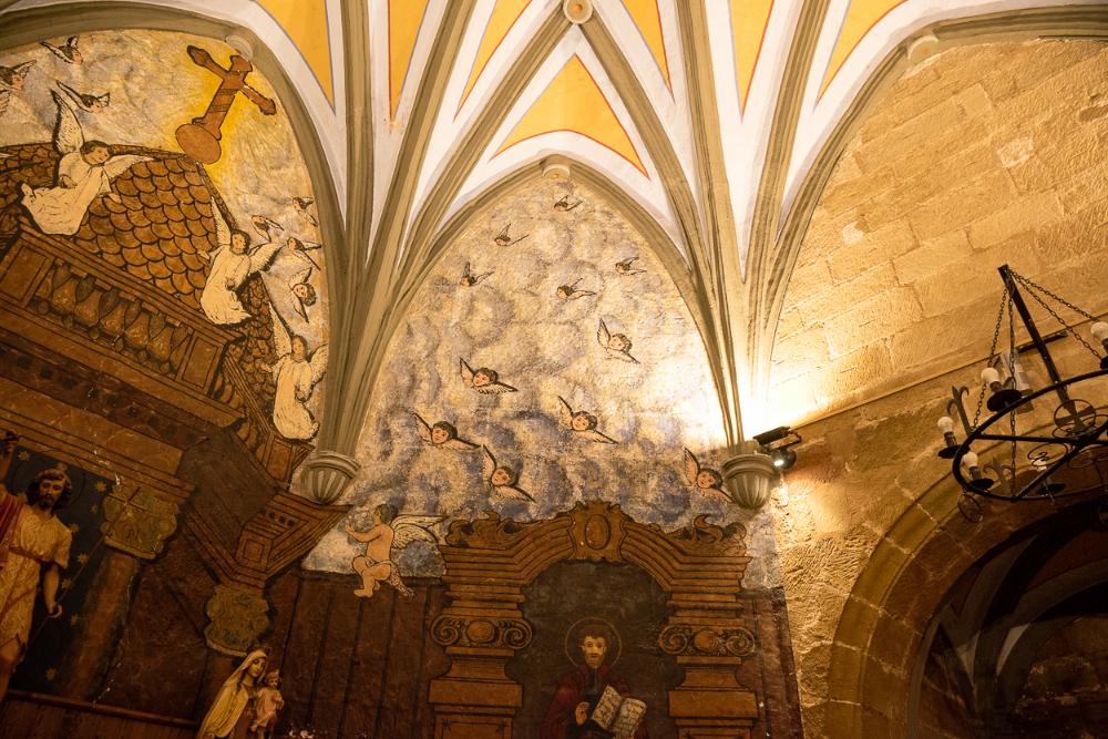 - En el interior de la iglesia se puede contemplar abundante ornamentación pictórica a modo de falsos retablos de diferentes diseños que posiblemente datan de finales del siglo XVIII, además, de diversas cruces de consagración, también pintadas. La última restauración se llevó a cabo en 1994. Está situada en la Plaza de la Iglesia, reformada en el año 2005.