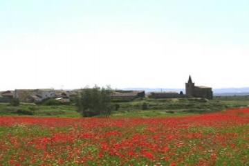 - Construida en el siglo XVI, es de estilo gótico popular. Situada en un saso que domina una gran extensión de los llanos monegrinos